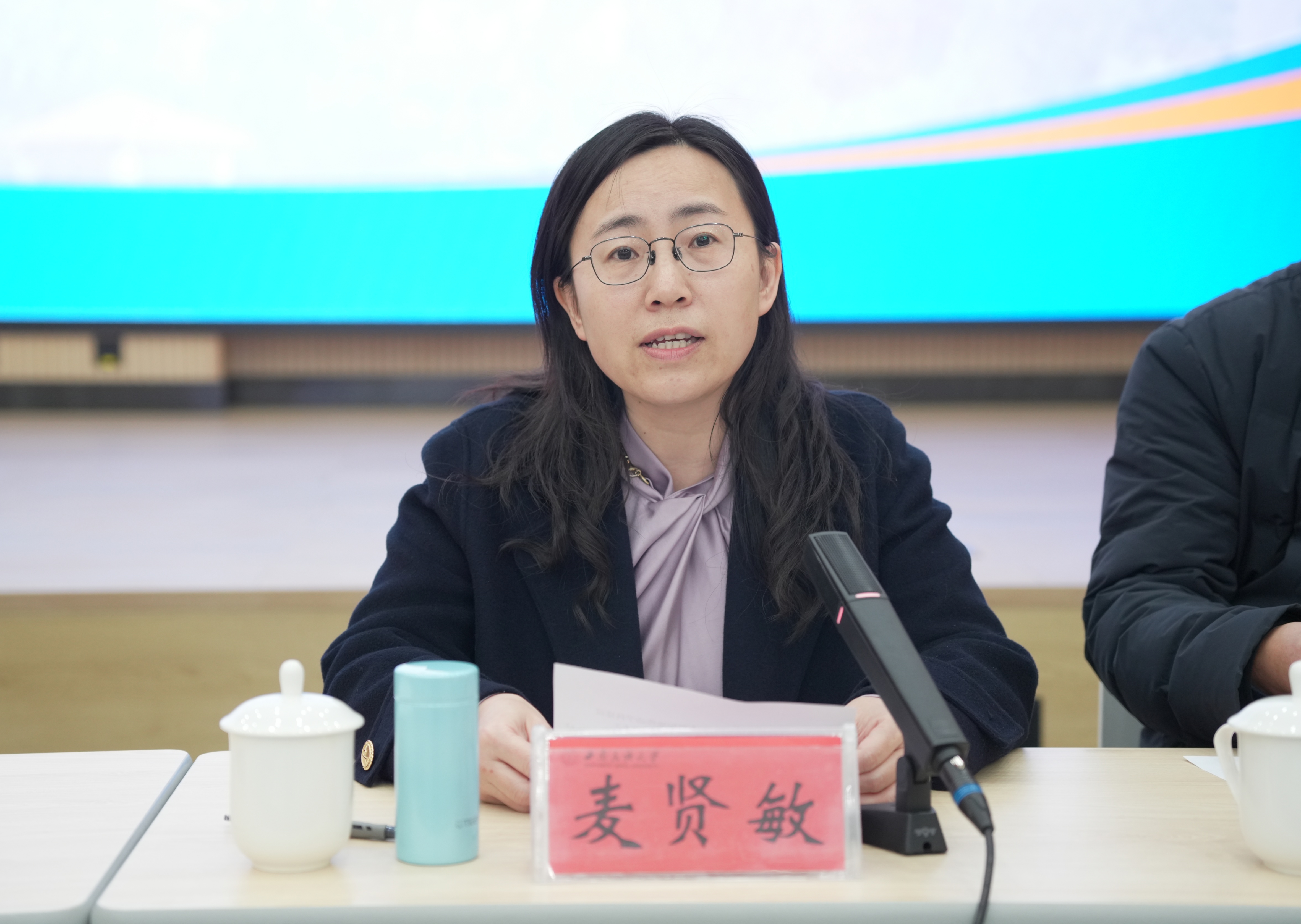 校党委副书记、校长麦贤敏以“构建生师校发展共同体有组织地推动学科建设”为题作了报告。她表示,要牢固树立“生师校发展共同体”理念,推动学生、教师与学校协同成长、相互成就,真正实现“人人出彩”。面对新时代高等教育的“质量、特色、贡献”之问,她提出,学校要以学科建设为核心回应时代要求。质量方面,要推动专业要素实现均衡发展,保障办学底线,全面推进OBE理念,加快工程与师范专业认证;特色方面,要深化“一主线两高地”建设,强化学科特色;贡献方面,要突出服务中华民族共同体建设和区域发展,推动科研“立地顶天”。她强调,要从顶层设计、角色分工、资源投入三方面系统推进学科建设,以突破、分类、分层、交叉、开放为导向优化校院分工与资源配置,集中力量办好学科建设、领军团队、重大成果等“大事”,变“自然生长”为“有组织培育”。