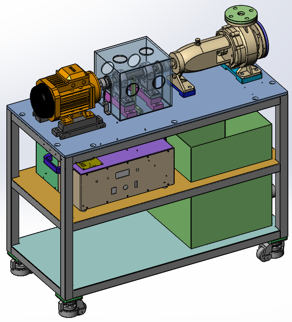 本实验系统由平台机架、驱动电机、联轴器、支撑轴承、水泵叶轮等系统组成。