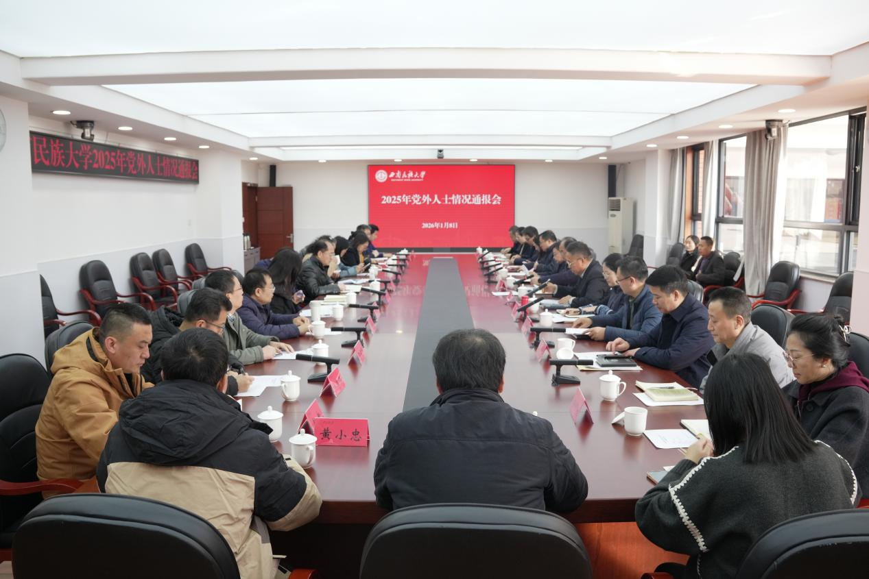 1月8日,西南民族大学党外人士情况通报会在航空港校区召开。校党委书记张宁,校党委副书记、校长王永强,校党委常委、副校长乔俊杰,校党委常委、统战部部长罗萍出席会议,学校各民主党派基层组织负责人、各级党外人大代表、政协委员及统战团体负责人参加,会议由张宁主持。