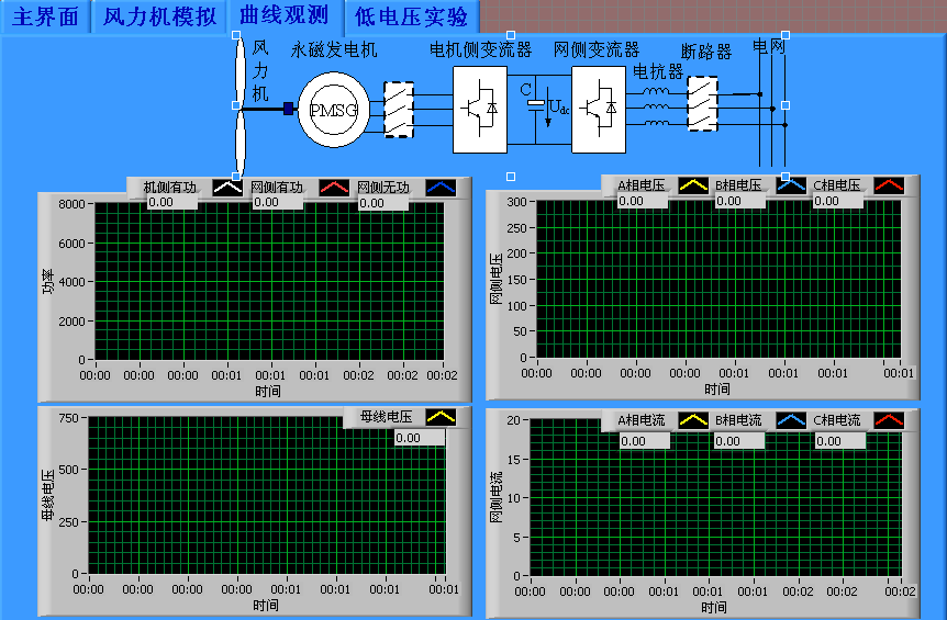按照双馈风力发电机组机械结构进行模拟,具备主动拖动、并网发电功能。 |