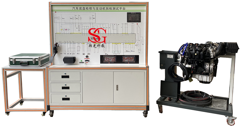 拆装翻转台架由电控汽油发动机总成和可做360度翻转的发动机拆装架组成,运行检测控制台由控制面板、发动机电控单元、冷却系统、供油系统、蓄电池等组成;