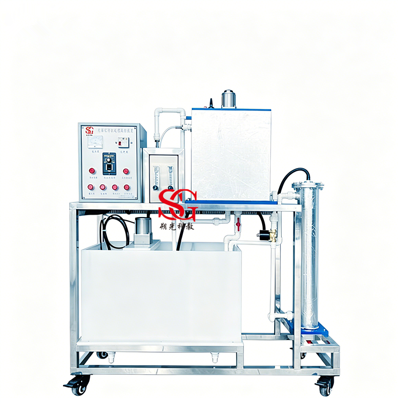 5.304不锈钢台面、拉丝银双色板标牌标注主要组成单元,管路性质和水流方向标识,便于学生了解设备。