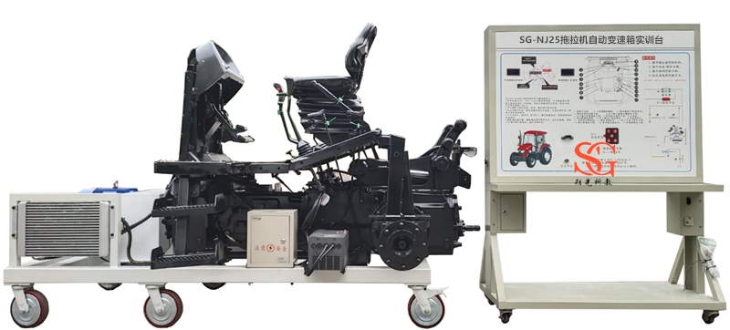该设备采用 翻新东方红LF804-C锐智系列动力换向拖拉机的动力换向自动变速器总成及运行附件为基础(东方红LF804拖拉机拆卸车身与前桥),可调速三相异步电动机做动力源,对变速器进行档位显示、空档起动、前进档及倒档运行等工况实践操作,真实展示拖拉机动力换向变速箱组成结构和工作过程。