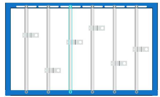实验台机架如图2所示:机架中有5根铅垂的活塞杆,它们可沿X轴左右移动,固定靠六角头螺钉和蝶型螺母固定。需移动时请先将蝶型螺母松开,双手推动活塞杆.并尽可能使它保持垂直状态。活塞杆上的滑块可沿Z轴上下移动,用内六角螺钉将滑块紧定在活塞杆上。(注意:在移动立柱或滑块时需用直尺或卷尺量出它们的相对位置再把螺钉拧紧。)