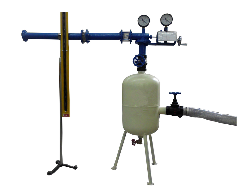 真空泵运转时,空气自实验本体的吸气口进入,一次通过进气管段、孔板流量计、喷管,最后排至室外。