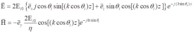 取坐标系如图。能与上面类似的处理,可得此时媒质1中的合成波的电磁场表示式为