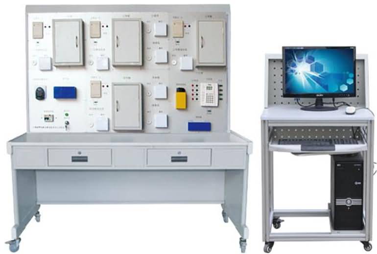 本系统控制部分全部采用实物,控制对象采用仿真模型,整个实训装置主要由读卡器、控制器、感应卡、管理软件、巡更机软件系统等组成。
