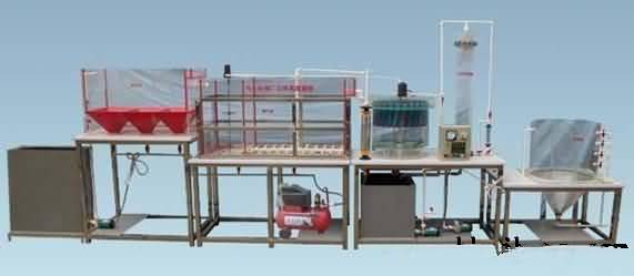 一、装置概述 本装置以现场工程中的小型污水处理厂部分处理系统为原型,其中配置多斗初沉池、曝气池、二沉池、砂滤装置及浓缩池等;污水通过配水箱被提升至初沉池进行初级污泥沉淀,然后进至曝气池进行接触氧曝气处理,曝气通过小型空气压缩机,并通过风量计进行对曝气量的控制;经过曝气池的污水再通过二沉池进行沉淀;再进入砂滤装置进行过滤;最后进入浓缩池进行浓缩处理。学生通过对该污水处理厂立体布置模型系统的学习,可了解系统中典型污水处理系统的应用,掌握各个系统的工作原理,进而具备设计污水处理厂各处理系统的能力。 二、产品特点 污水处理各级系统模拟真实应用中的污水处理厂的工艺流程,可了解真实污水处理厂的控制流程及控制策略,了解各处理系统的构造及工作原理; 控制策略中涉及闭环控制系统,曝气与风量计构成人工控制的闭环控制策略; 可通过搅拌电机的调试装置调速搅拌电机的转速,以达到合理的系统要求; 三、技术参数: 处理水量:10~30L/h; 装置外形尺寸:2200mmX500mmX1600mm; 输入电源:AC220V; 功率800W; 四、实训内容 实训一:多斗式初沉池的基本结构、工艺设计和制作方法 实训二:曝气池的基本结构、工艺流程和制作方法、曝气量的控制 实训三:沉淀池的基本结构、工艺流程和制作方法 实训四:污泥回流系统的基本结构、工艺流程和制作方法 实训五:压力砂滤罐的基本结构、工艺流程和制作方法 实训六:角锥农缩池的基本结构、工艺流程和制作方法 实训七:电气控制流程及线路试验 五、配置: 装置包括配水系统、多斗式初沉池、曝气池、沉淀池、污泥回流系统、压力砂滤罐、角锥农缩池等组成。配套有搅拌配水箱2只、水泵3只、调速电动机及调速器1套、污泥回流水泵1台,旋涡式气泵1台,转子流量计2只,气体流量计1只,微孔曝气器2套,电控箱1只,漏电保护开关、按钮开关、连接管道和球阀、不锈钢台等。