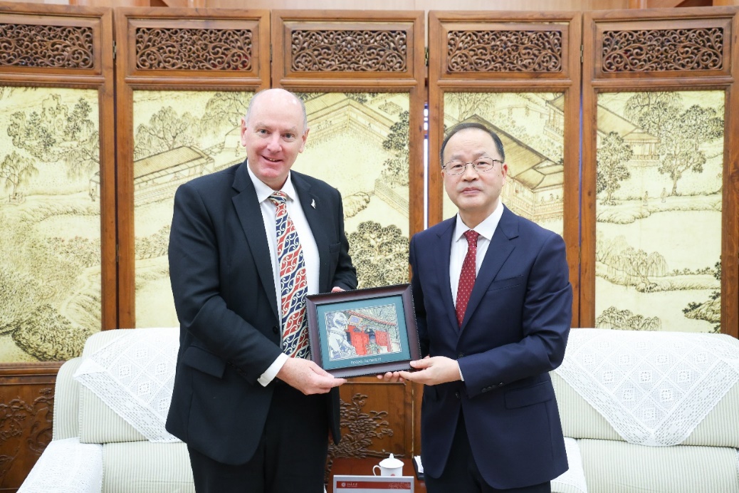 12月18日上午,新西兰驻华大使乔文博(Jonathan Austin)一行访问北京大学。校党委书记、校务委员会主任何光彩在临湖轩会见来宾,副校长方方陪同会见。