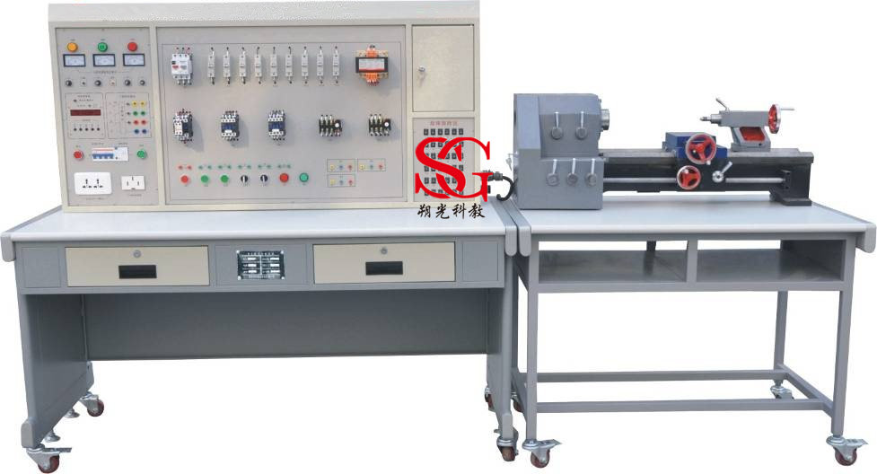 本装置由电源控制部分、机床电气控制部分、半仿真机床实物部分构成。电源控制部分包括实训定时、定时报警、安全用电自动控制等,机床电气控制部分把整台机床内部电器装在正面面板上,能直观地观察机床工作时各电器的动作状况。故障点在面板上设有相应测试点,供实训考核者测试用。仿真机床部分能模拟机床各种运动。通过本装置的实训能使学员掌握机床常见故障的现象、故障产生的大概部位,熟练掌握机床电路工作原理,其是维修电工初、中、高级技能鉴定的理想设备。