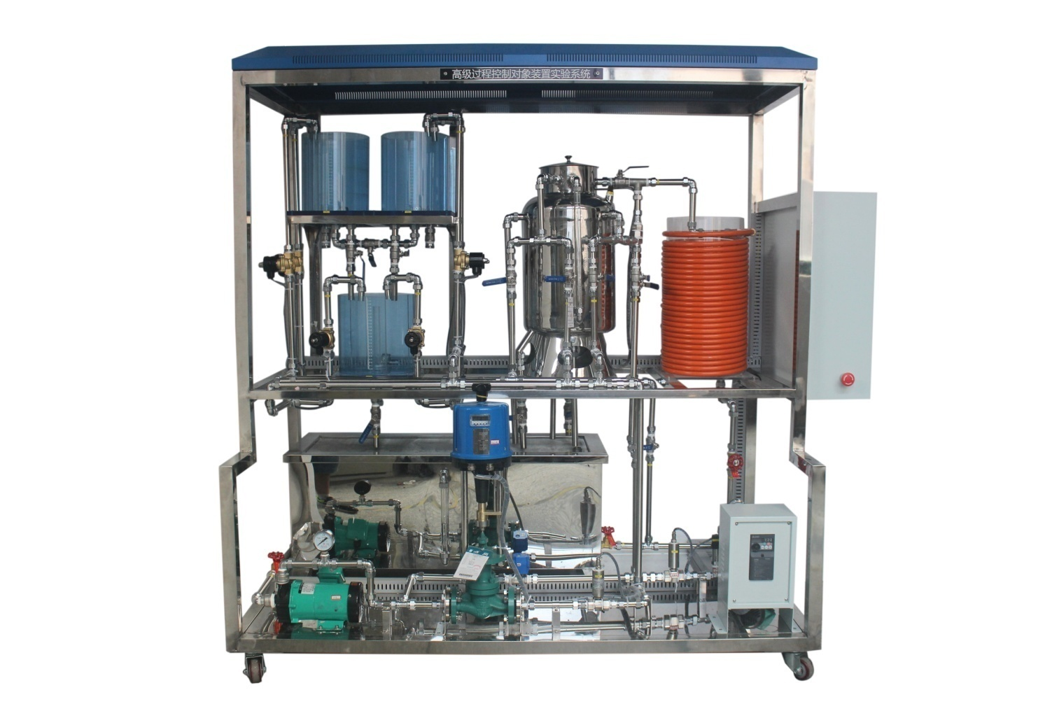 一、概述:集散型过程控制综合实验装置(Process Control System,简称PCS),是模仿现代工业生产过程中常见的物理量,诸如温度、压力、流量、液位等参数,对其进行测量、控制,分析过程参数变化特性,研究过程控制规律的教学实验设备,过程控制综合实验装置选用智能化的工业用仪器仪表,接近工业实际,使用安全,运行稳定,维护简单,性价比优越。本装置集合多种控制方式,再现实际工业现场使用的控制手段,并提供用户更友好的开发接口。