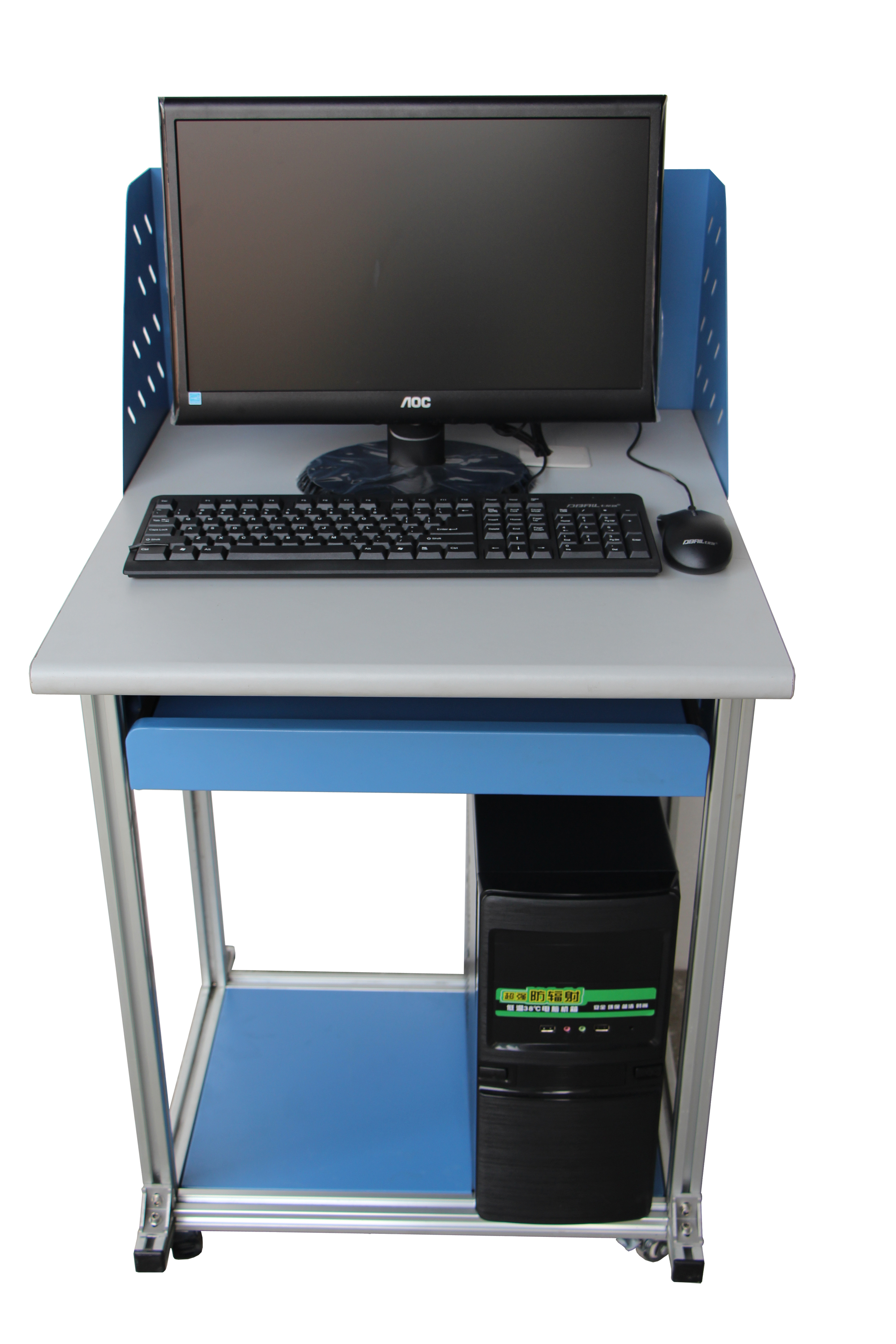 实训操作台架:外型尺寸为1730mm×730mm×1650mm(长*宽*高),实训操作台架为铁质双层亚光密纹喷塑结构,操作面具有防火、防水、耐磨高密度板, 尺寸为于1730×380mm(长*宽),结构坚固;台架下半部设有两个大抽屉、柜门。操作面中不低于1250mm×300mm(长*宽)面积用于安装电源控制屏。台架底部设有4—6个万向轮。