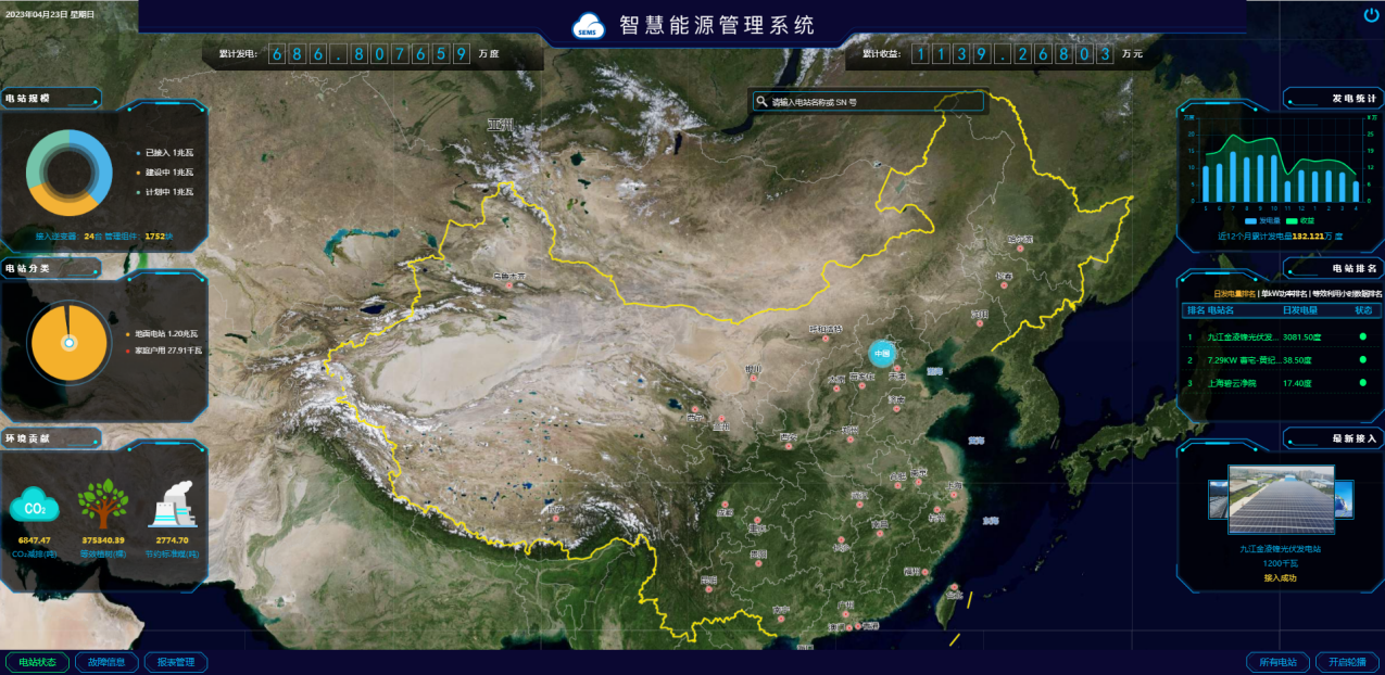 使用光伏、风力、生物质、地热4种新能源并结合外部电力输入以进行能源供应模拟并能自动计算产能。
