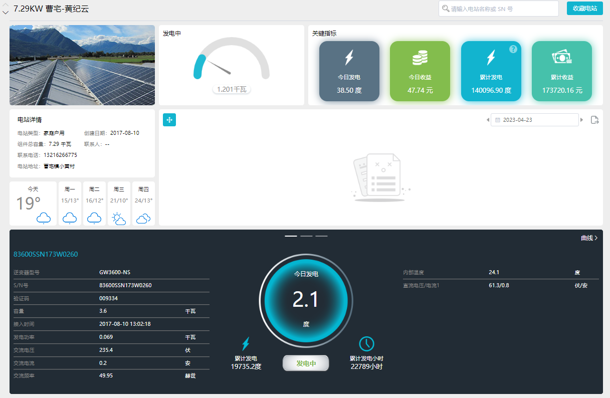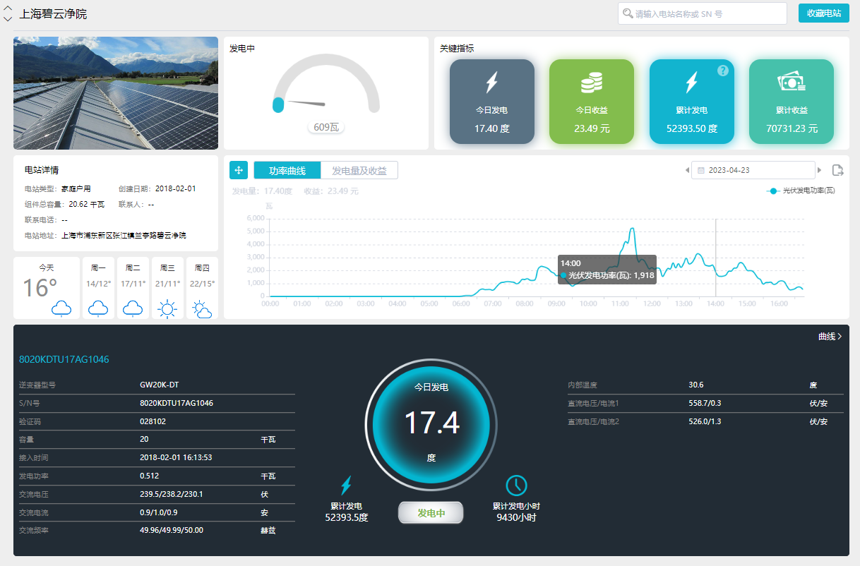 根据每小时的用电情况,实现户式/小型分布式光伏电站的模拟设计,并根据所选光伏组件与逆变器估算该电站的建设成本以及模拟该分布式电站与负载的合并运行情况可设置不同容量大小的风机,模拟风力发电功率