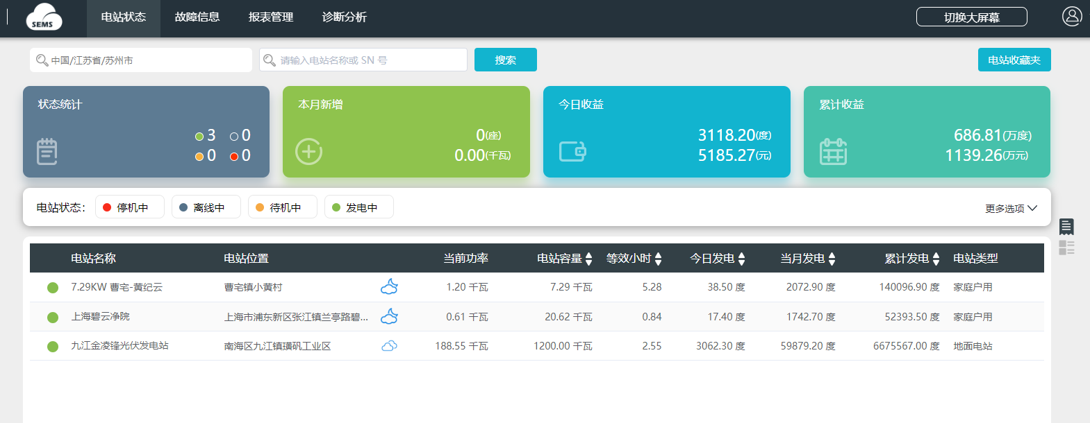 根据逆变器、光伏组件的价格,风机机组价格,地热电站价格,生物质电站价格对所设计的多能互补方案的建设总成本自动统计在初始化并部署完成后,展示整个区域能源状态,并根据预设值进行计算和输出,根据输出结果形成各类报表。包括总数据和日数据;