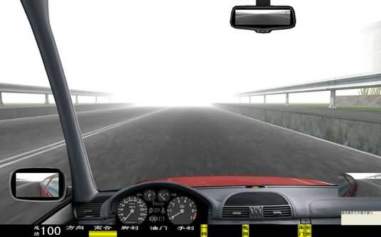 炫目驾驶是WM2011型汽车驾驶模拟器软件中的一个场景,在WM2011型软件中取得了较好的效果,因此称之为经典版。该场景主要用于训练学员在炫目下的驾驶适应能力。场景中有60辆其它车辆。