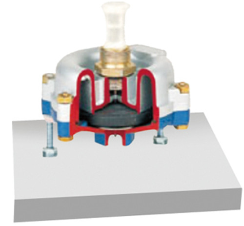 3.设备底座架(带防震胶垫)采用1.5mm冷板冲压成形,表面经喷涂工艺处理。防震胶垫与底座用M6*4螺丝固定。