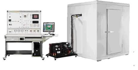 实训装置主要由控制台、风冷制冷机组、拼装式冷库、主机实训模块、温度和传感器采集模块及实训模块等组成