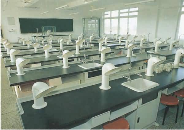 9、实验台桌:台面采用人造石或耐腐蚀理化板、弯曲防火板,柜身采用三聚氰胺浸渍饰面板。