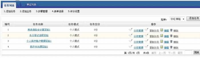 (4)软件需要内置大量的社保实验流程,包括养老保险、医疗保险、失业保险、工伤保险、生育保险、公积金保险等。且需要社保体系案例、农保体系案例,并更具上海地区的实际情况,增加外来人员综合社保案例。且可以将多个案例组合在一个实验中让学生进行操作。