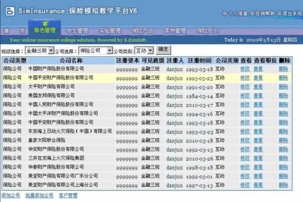 业务真实:系统提供在保险业务处理过程中 ,模拟目前国内外多个保险公司、公估公司、再保险公司、经纪公司的真实信息,并采用保险公司的真实产品及条款、费率,使学生在学校就能接触到最新的保险行业信息。