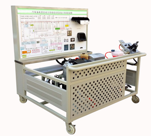 丰田普瑞斯1.5L油电混合动力系统总成(包含原车电控发动机、油电混合驱动桥、HV蓄电池等附件总成)、原车油电混合动力系统控制电脑、电子油门加速机构、组合仪表、油电混合动力起动运行所有相关的原车附件、故障模拟考核和排除系统、原车电路原理图板及检测端子、备用60AH大容量蓄电池、大容量不锈钢油箱、油电混合动力加速机构、控制面板柜、可移动台架、台架备用电源总开关、原车故障检测通讯的诊断座、散热系统、台架操作说明书、实验指导书等附件。